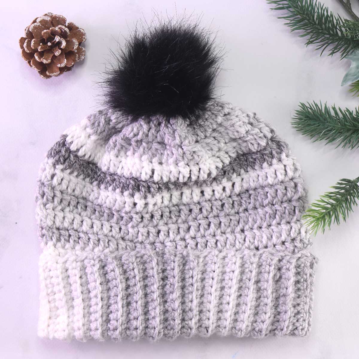 The beanie features a thick folded brim for extra warmth and a snug fit. You’ll also get optional instructions for adding a trendy faux fur pom pom to the top, giving your beanie a fun, modern finish.