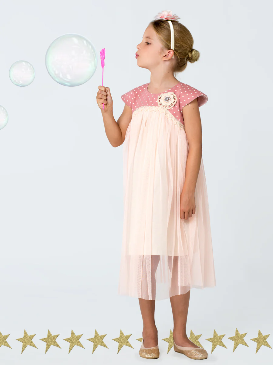 FABRIC SUGGESTIONS: The main dress and skirt can be made from light to medium weight cottons and you can use tulle or netting for the skirt overlay.