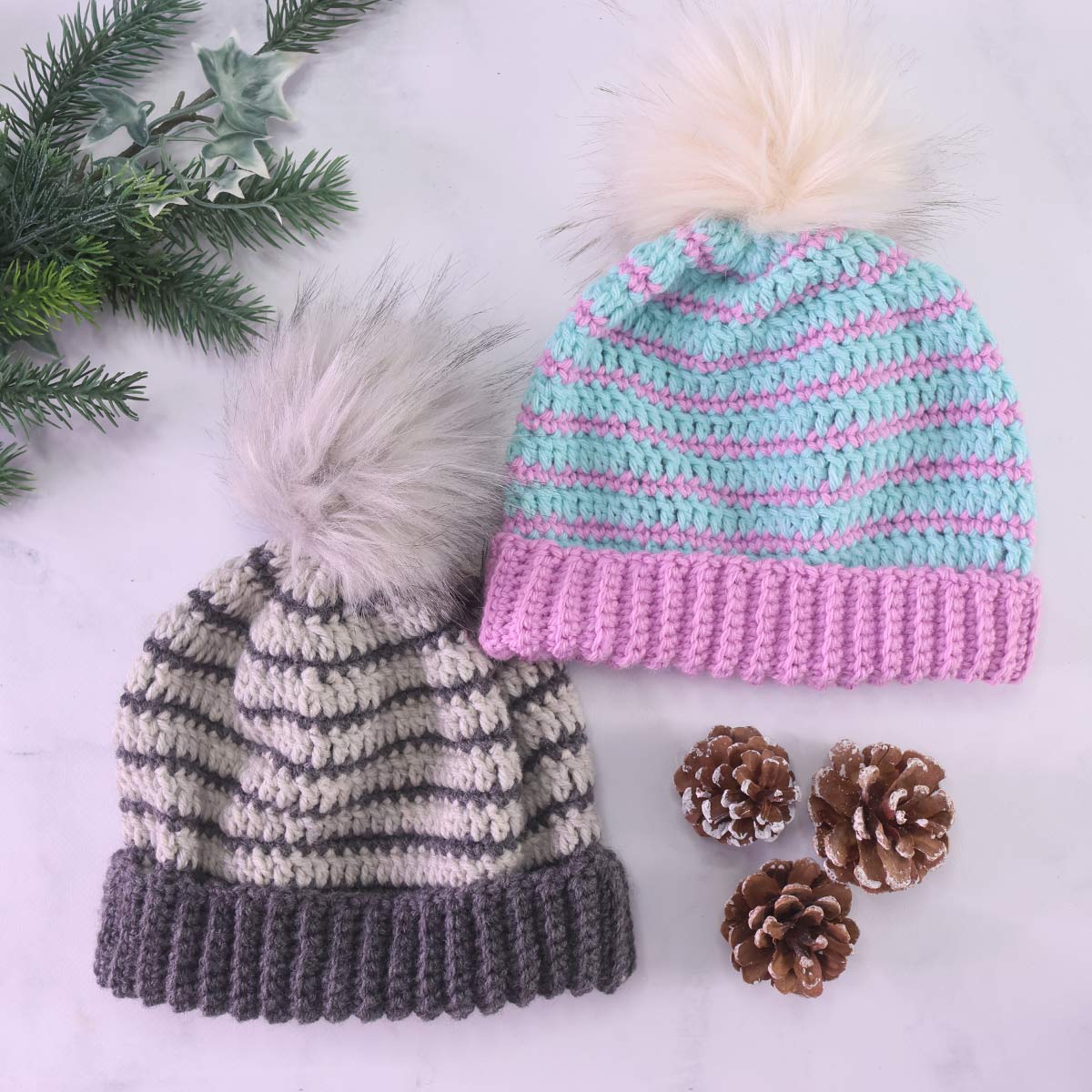 Get the striped beanie crochet pattern ad-free in a printable PDF. This easy beanie pattern uses just the basic crochet stitches, single and double crochet.